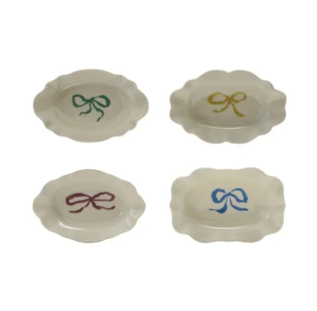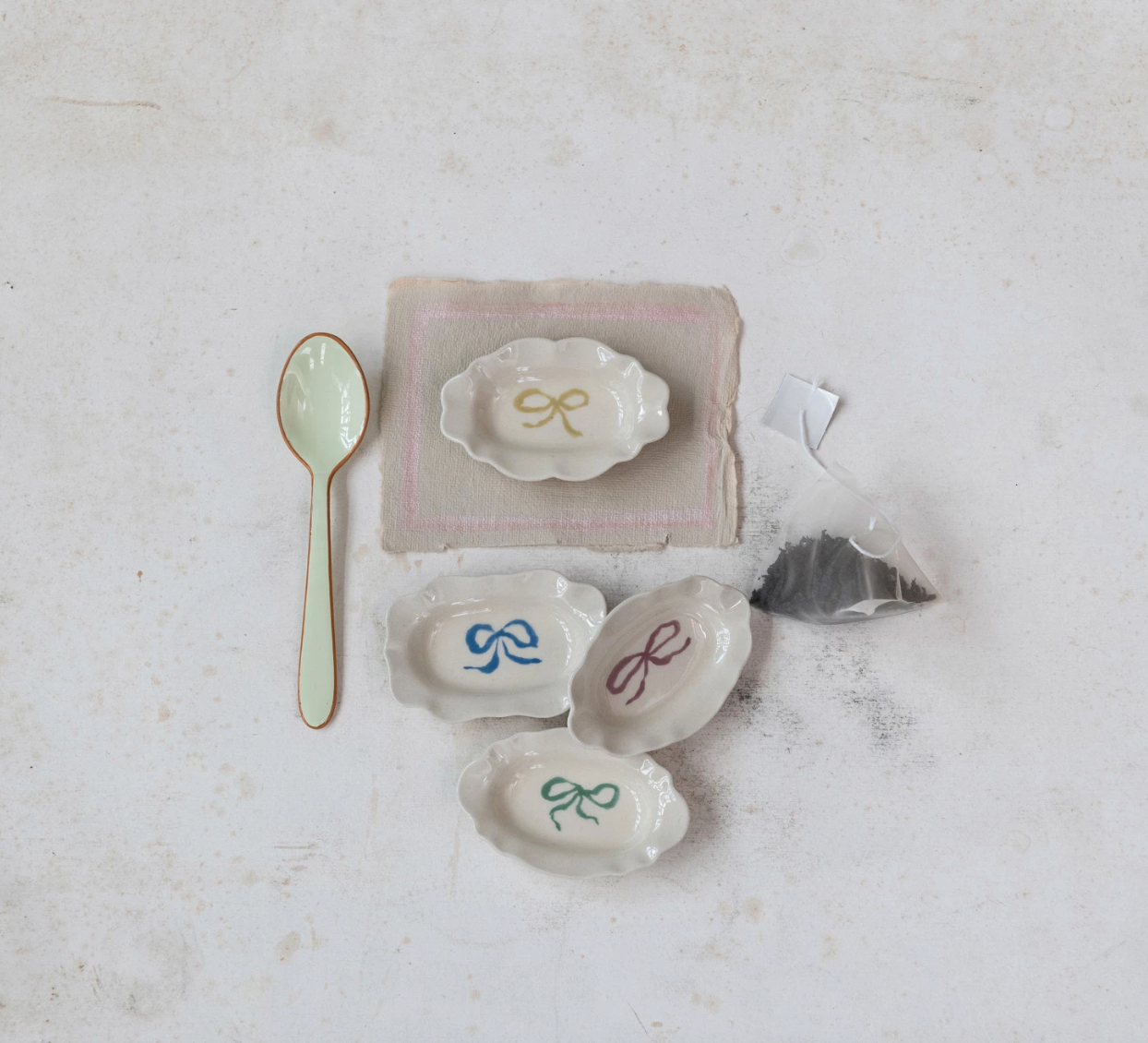 3"L x 2"W Stoneware Scalloped Dish w/ Bow