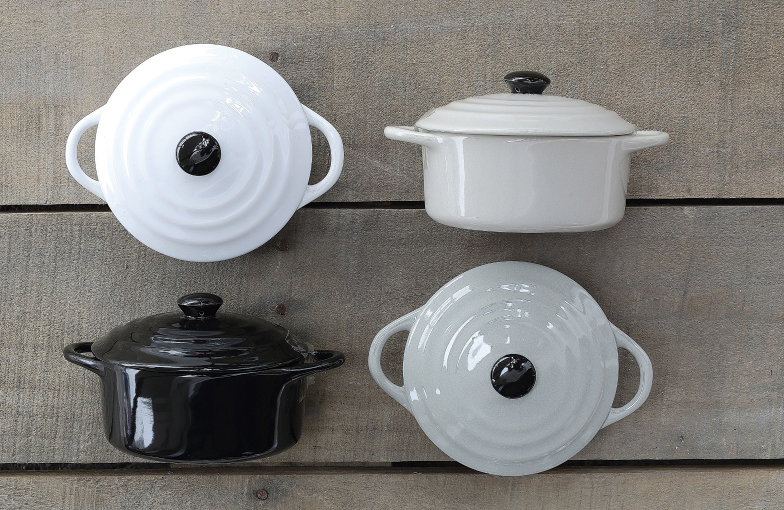 5" Round x 3"H 1 Cup Stoneware Mini Baker w/ Lid, 4 Colors