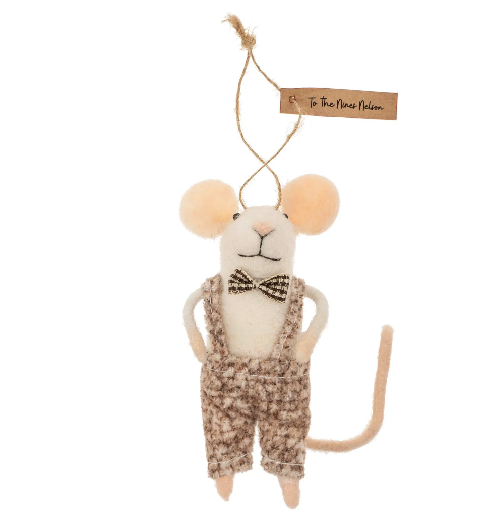bestselling mice are made from soft wool/polyester felt and outfitted in characterful ensembles. Charming hung on a tree, on a wine bottle or holiday package, or even sitting on the shelf supported by their wire tails, they make an easy and memorable gift for anyone on your list.